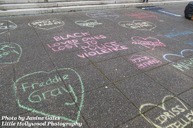 Names of Black loved ones lost to police violence are written in chalk outside the Washington State Capitol Building in Olympia.